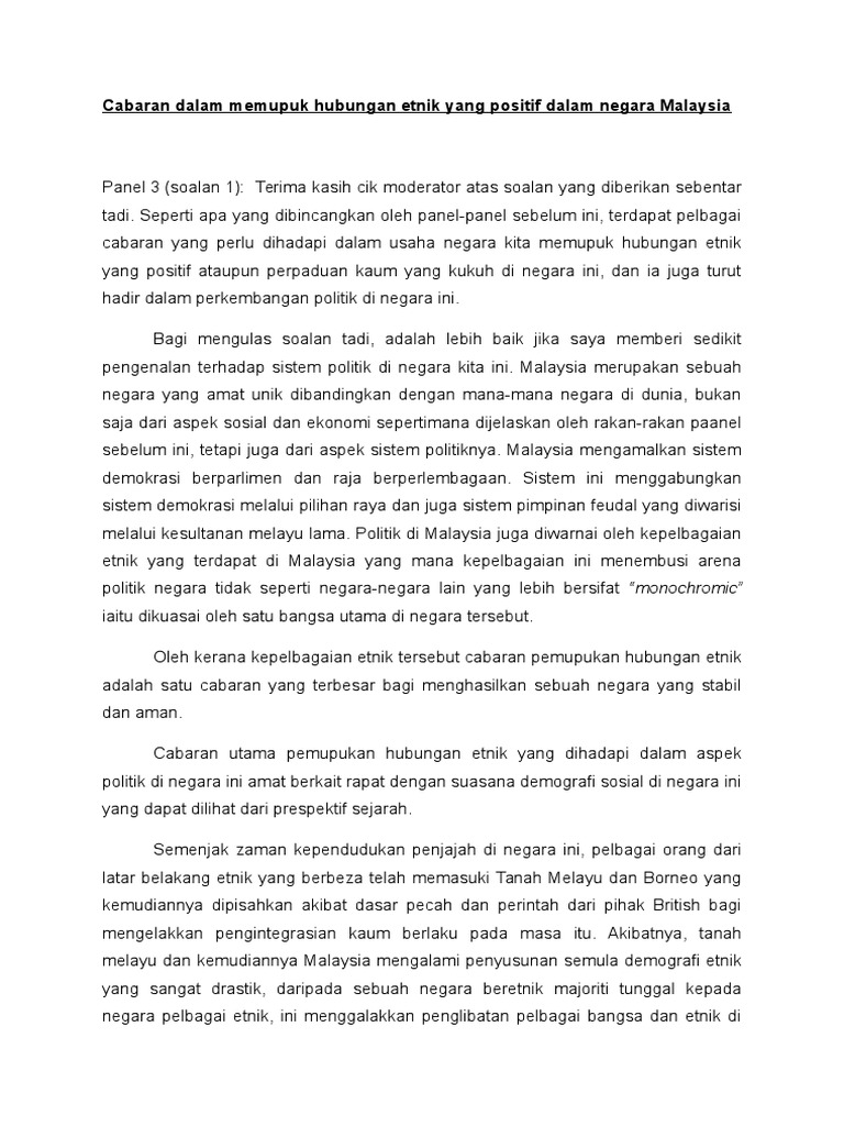 Cabaran Dalam Memupuk Hubungan Etnik Yang Positif Dalam Negara Malaysia Pdf